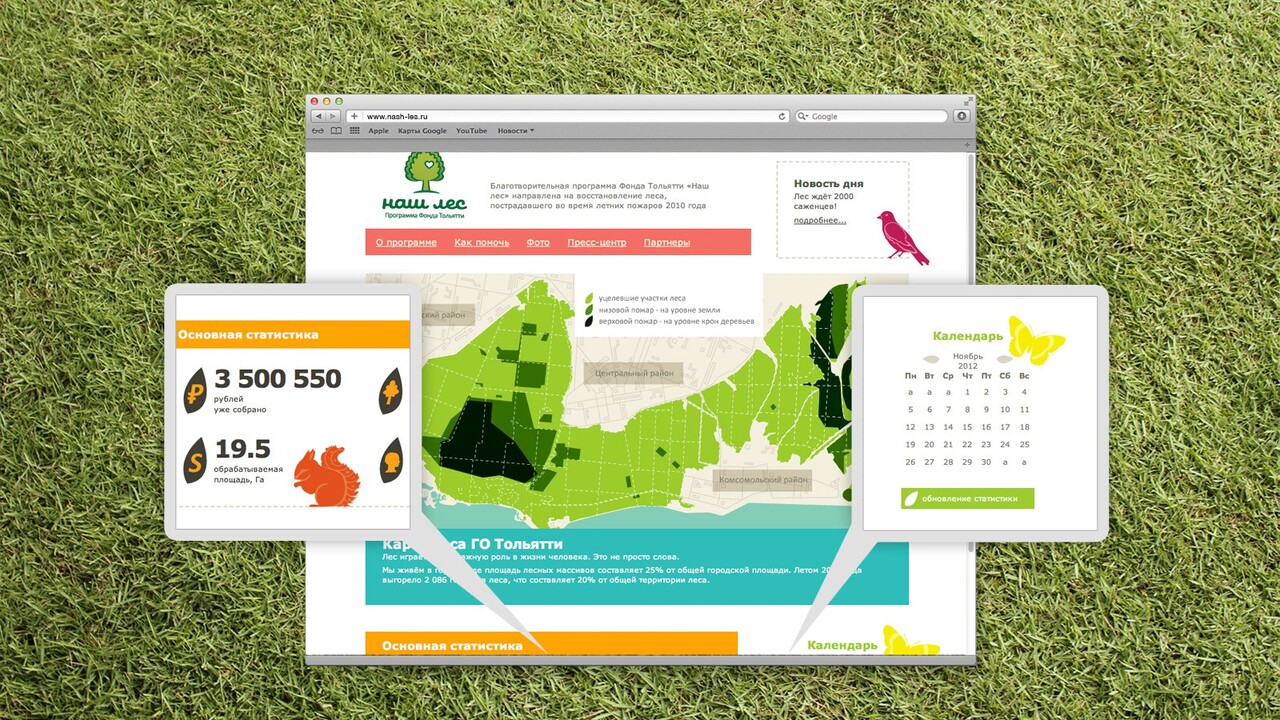 ЗАДАЧА: Разработать сайт для городской благотворительной программы «Наш лес», направленной на восстановление леса, пострадавшего во время пожаров в Тольятти летом 2010 года.