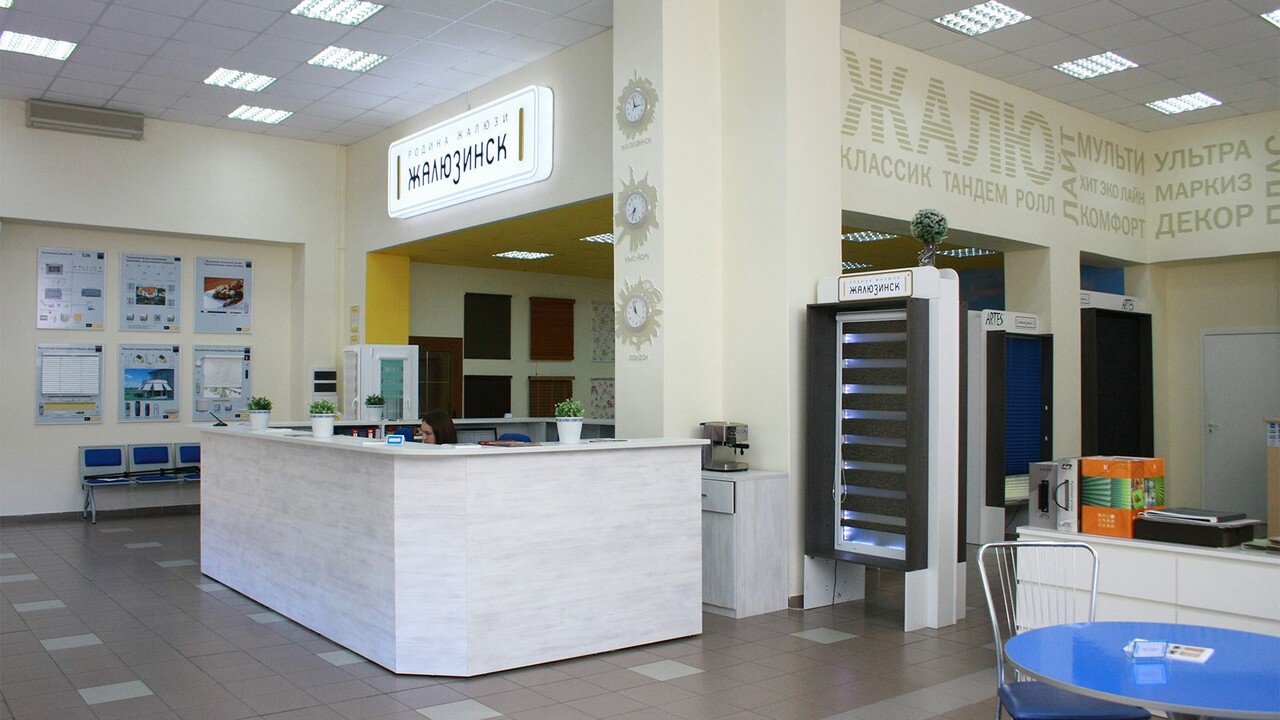 РЕШЕНИЕ: Пространство тольяттинского шоу-рума «Жалюзинск» объединило четыре стороны света. Зона ресепшeн – место, в которое покупатели попадают сразу по прибытии в Жалюзинск, определяются со своими желаниями и представлениями о жалюзи и не без помощи консультанта отправляются за своей интерьерной мечтой в одну из частей света. Здесь на специально разработанных часах можно увидеть – как в аэропорту – который час в разных городах планеты. Товарная линейка жалюзи с фирменными названиями солнцезащитных систем размещена на стене – самом видном месте. Неяркий цвет краски, и… появляется ощущение, что композиция будто соткана из теней и полутеней, оставленных жалюзи.