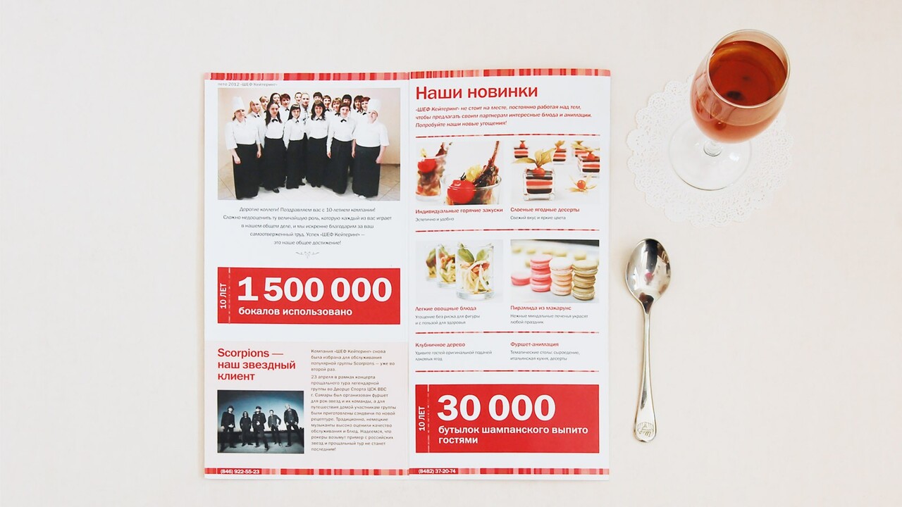ЗАДАЧА: Выпустить в свет буклет для фуршета в честь 10-летнего юбилея выездного ресторана «ШЕФ Кейтеринг».